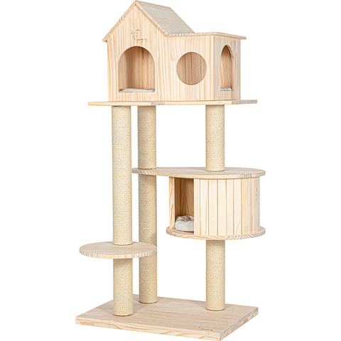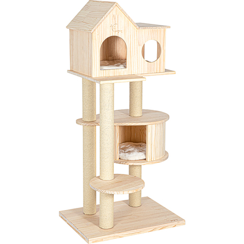 China Factory Großhandel Luxuriöses Haus Big Pet Condo Natürliche Sisal Holz Scratcher Möbel Kratz baum