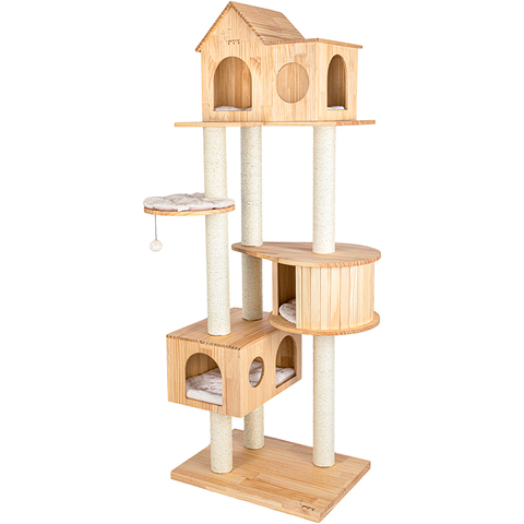 Großhandel Massivholz boden Cat Climbing Holzrahmen Luxuriöse hohe große Kratz baum Eigentums wohnung